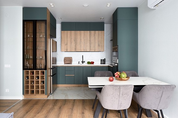 В таких случаях приходится адаптировать параметры кухонного гарнитура. Можно изменить высоту напольных кухонных шкафов, глубину фасадов для кухни, а также варьировать длину кухни в зависимости от особенностей помещения. Именно так рождаются проекты, где учитываются привычки и образ жизни семьи, а не только средние размеры кухни.