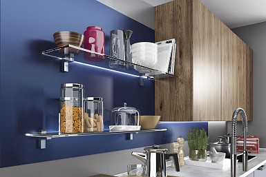 Правильное освещение сделает привлекательной даже самую скромную кухню. С помощью светильников можно выделить открытые полки, рабочую и обеденную зону. Для минималистичного интерьера подойдут лаконичные споты. Пространство в стиле лофт можно обыграть лампами на подвесах. Классический дизайн потребует нарядную люстру.