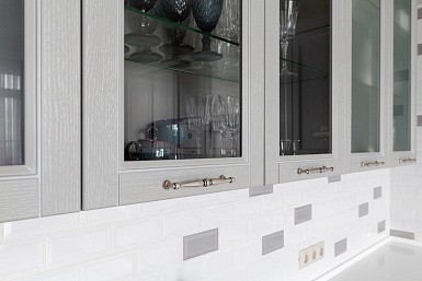 Если вы выбираете изготовление кухни на заказ, внимательно отнеситесь к выбору фурнитуры. Она тоже станет частью пространства, подчеркнет красоту даже недорого ремонта. Для плоских однотонных фасадов можно подобрать эффектные ручки, которые будут смотреться как гармоничный элемент декора.