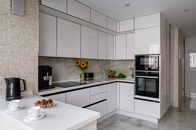 Столешница, заставленная разнообразной бытовой техникой, смотрится довольно неряшливо, особенно в небольших пространствах. Поэтому кухонная мебель со встроенной техникой выглядит гораздо привлекательнее. Спрятать за фасадами можно не только крупные предметы – вытяжку, духовой шкаф, посудомоечную машину, холодильник. Более мелкую технику, например, кофемашину, мультиварку и тостер тоже можно скрыть от глаз. Благодаря этому рабочая поверхность всегда будет выглядеть свободной и аккуратной.