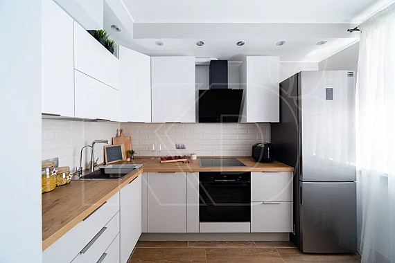 • Угловая. Это самое распространенное решение. Угловая кухня позволяет грамотно разместить рабочую зону и места для хранения таким образом, чтобы хозяйке было удобно перемещаться по комнате.