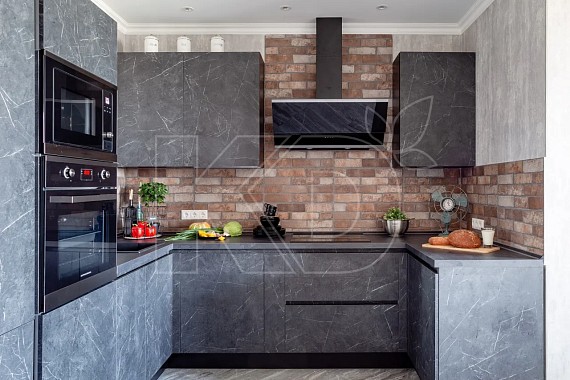 4. Серый. Для разбавления других оттенков на кухне 12м2 в классическом стиле часто используется серая гамма. Она удачно сочетается с голубым, песочным, белым.