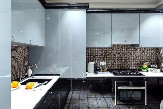 Особый шик – глянцевое декорирование фасадов или других элементов кухни. Это когда свет отражают лишь отдельные элементы. Обычно их изготавливают из самых современных материалов, например, из лакированного МДФ премиум-класса. Исходя из этого можно выделить следующие преимущества решения: