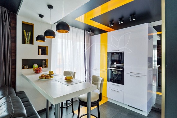 Особое значение при обустройстве такого жилья имеет кухонная зона. Она должна быть максимально удобной и не конфликтовать с дизайном остальной площади.