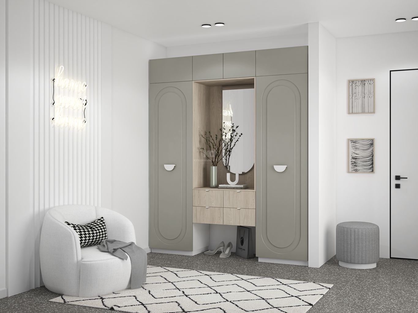 Прихожая Арко — это не просто функциональный элемент, а первый штрих в общей атмосфере дома. Она встречает гостей стильным силуэтом. Всё продумано до мелочей, даже на зеркало в виде перевернутой арки и ручки, повторяющие полуокружности связывают пространство в единую гармоничную концепцию.